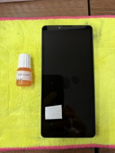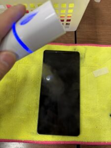その後、画像のようにコーティング剤を垂らして画面全体に薄く塗り伸ばします。